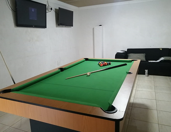 The pool table is located in the lounge next to the Administartion office and the laundry facilities.